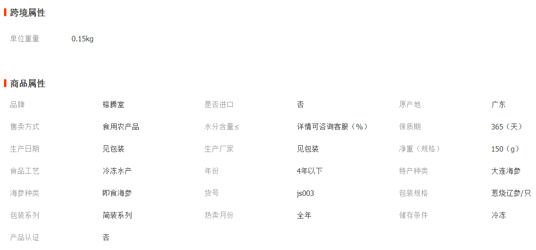 榕騰堂 批發(fā)即食海參蔥燒鮑汁遼參海鮮干貨冷凍酒店宴會食 材直供