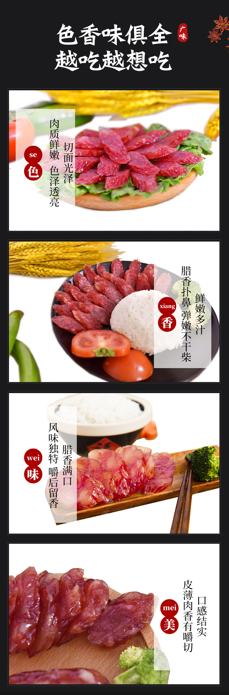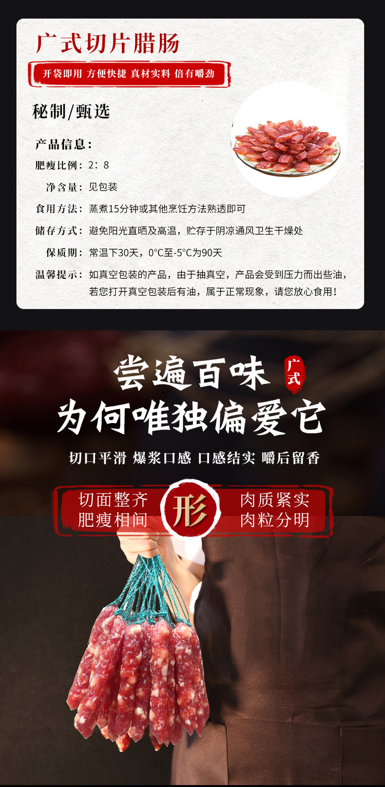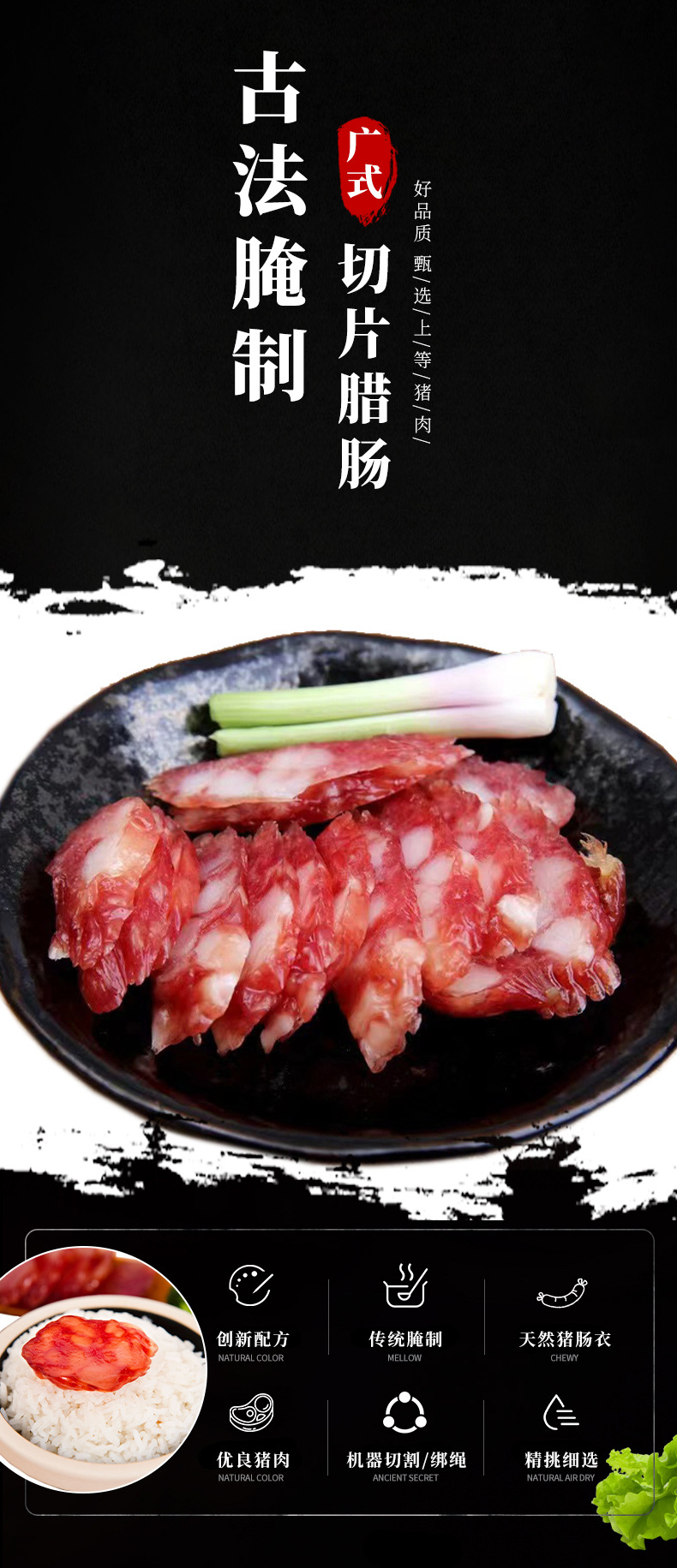 廣式切片臘腸廣東特產(chǎn)廣式臘腸煲仔飯商用香甜風(fēng)味餐飲香腸
