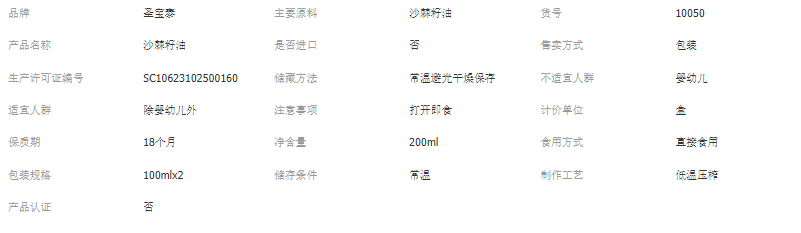 圣寶泰100ml沙棘籽油禮盒裝低溫壓榨沙棘油食用冬果源頭工廠低溫
