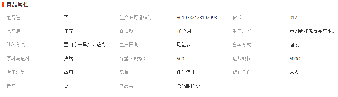 其他香辛料 燒烤調(diào)味料 其他調(diào)味品
