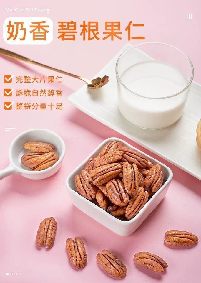 包裝規(guī)格【精選】碧根果仁凈重250g*1袋,【精選】碧根果仁凈重250g*2袋,【精選】碧根果仁凈重250g*4袋,【精選】碧根果仁凈重250g*8袋,【碎粒】碧根果碎仁250g*2袋