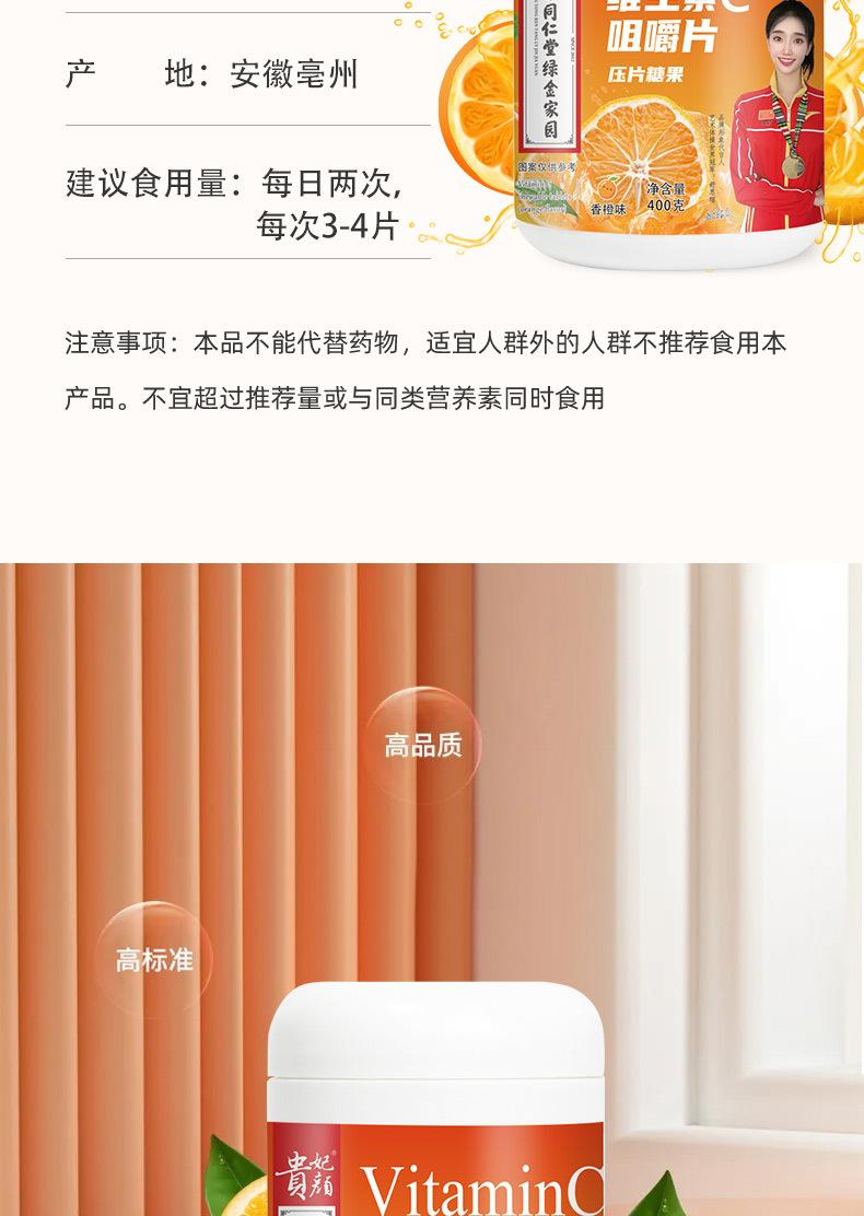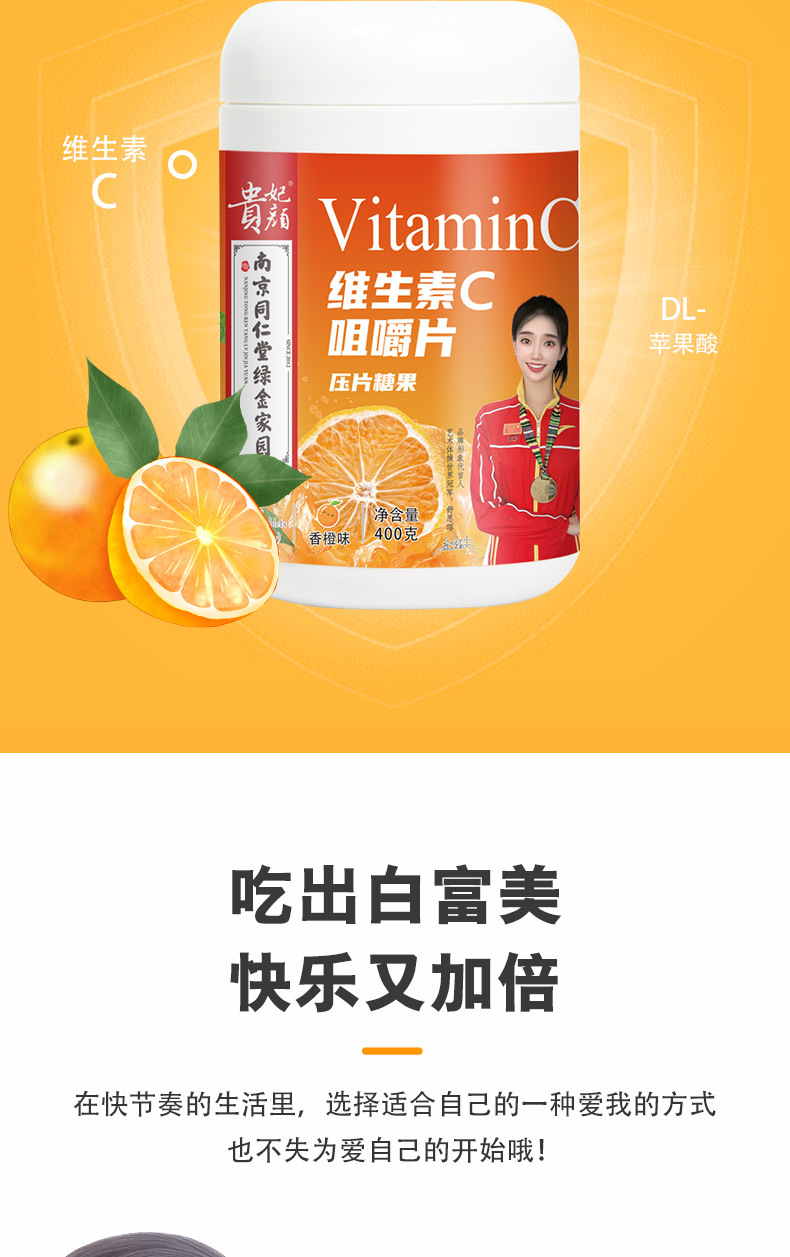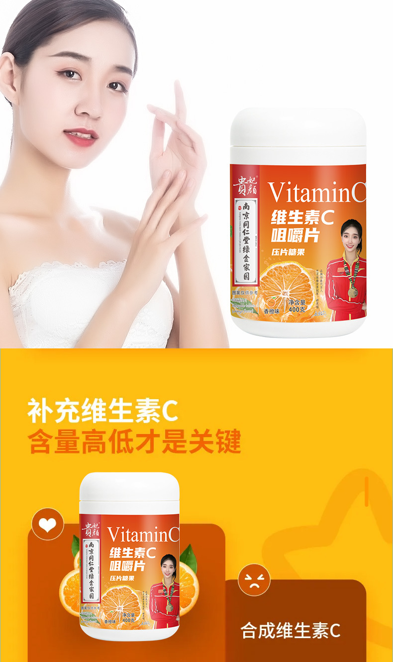 貴妃顏維生素C壓片糖果400克/大瓶裝正品爆款源頭廠家批發(fā)貨源