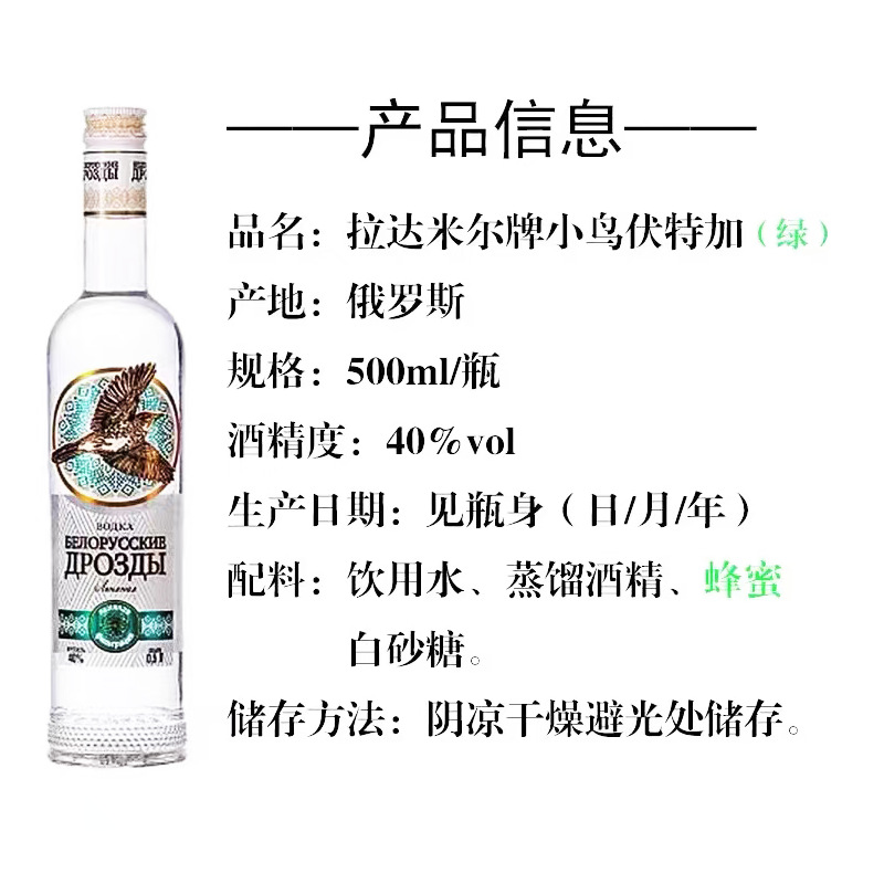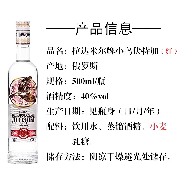 俄羅斯伏特加40度原裝進口洋酒白酒生命之水500ml小鳥伏特加56度