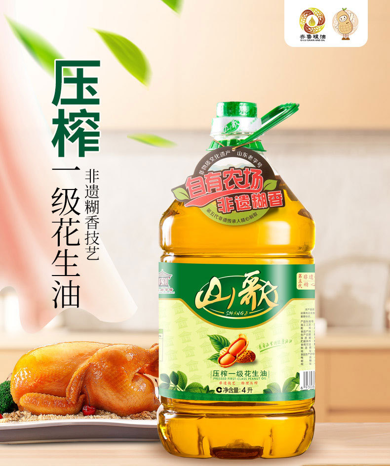 山歌壓榨一級花生油4L 山東廠家直銷批發(fā) 福利團購