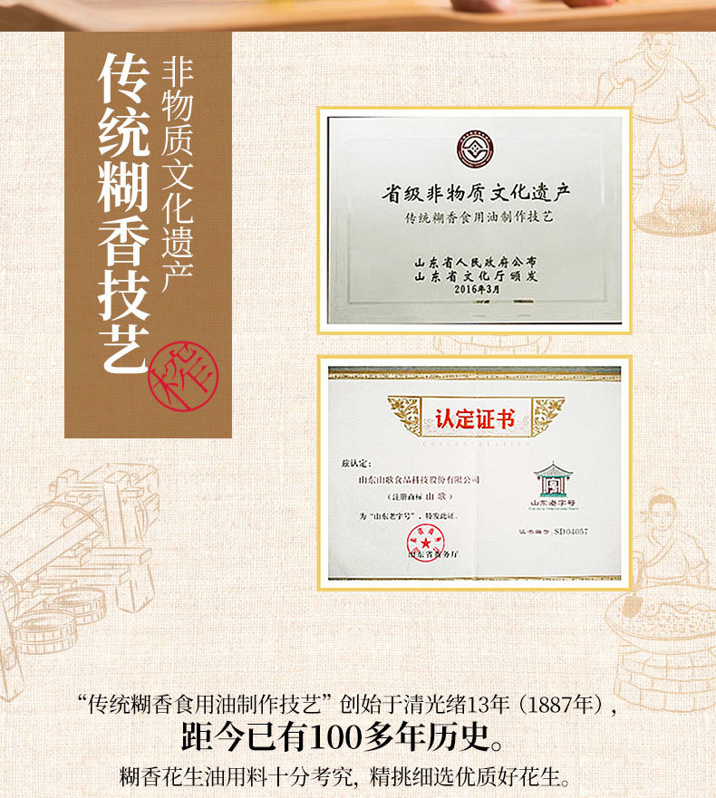 詳細信息 品牌山歌 產(chǎn)品類別花生油 商品條形碼6930817700098 是否進口否 原產(chǎn)地山東 售賣方式包裝 等級一級 凈含量(規(guī)格)4000(ml) 保質(zhì)期18(個月) 生產(chǎn)日期隨時生產(chǎn) 儲藏方法密封、避光、避熱儲存 生產(chǎn)許可證編號SC10237120100047 貨號00106 供貨時間全年 是否禮盒裝否