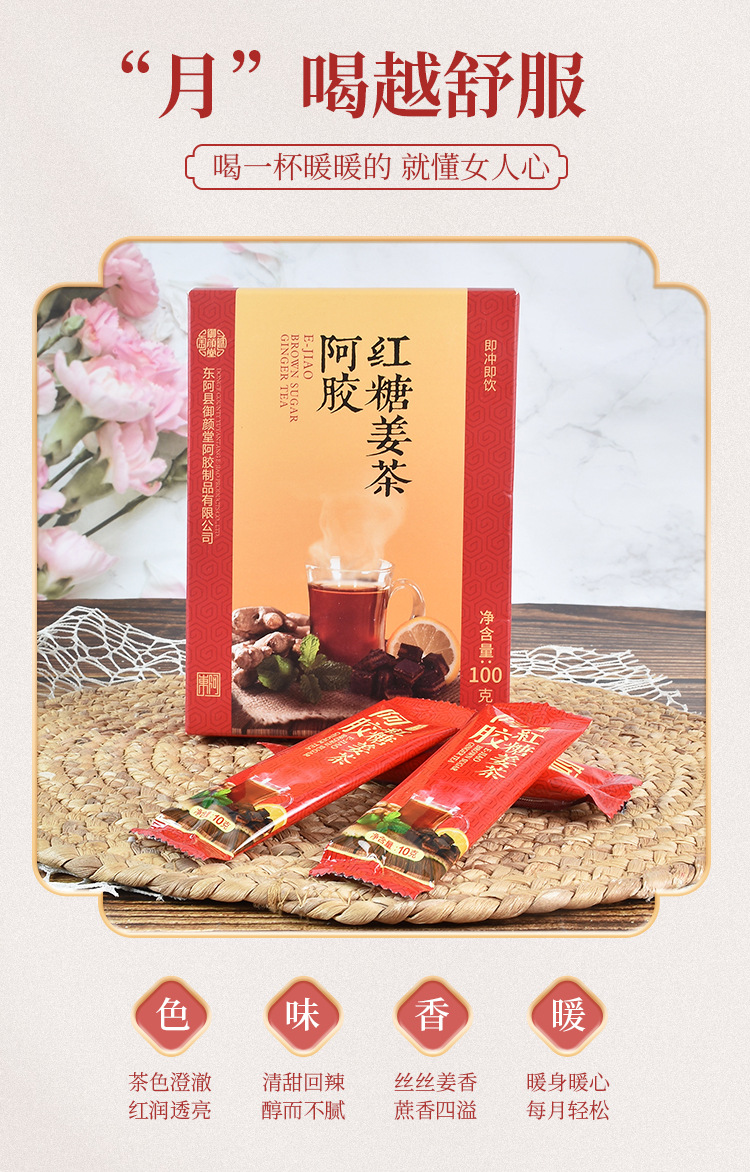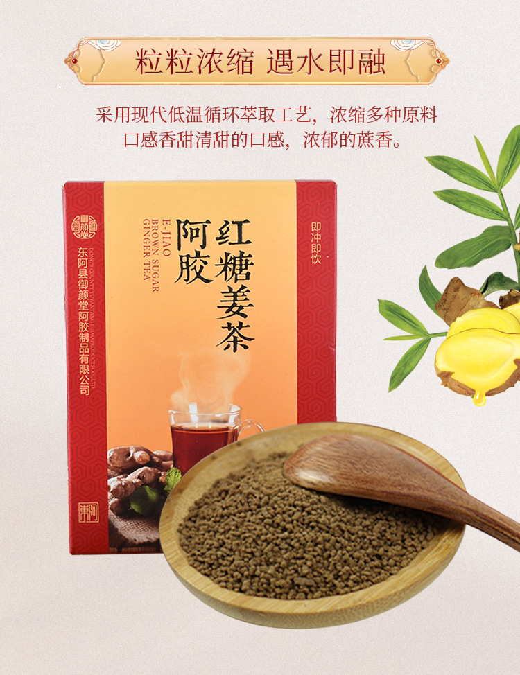 東阿批發(fā)阿膠紅糖姜茶 100g速溶即食阿膠紅糖姜茶 沖泡紅糖姜茶