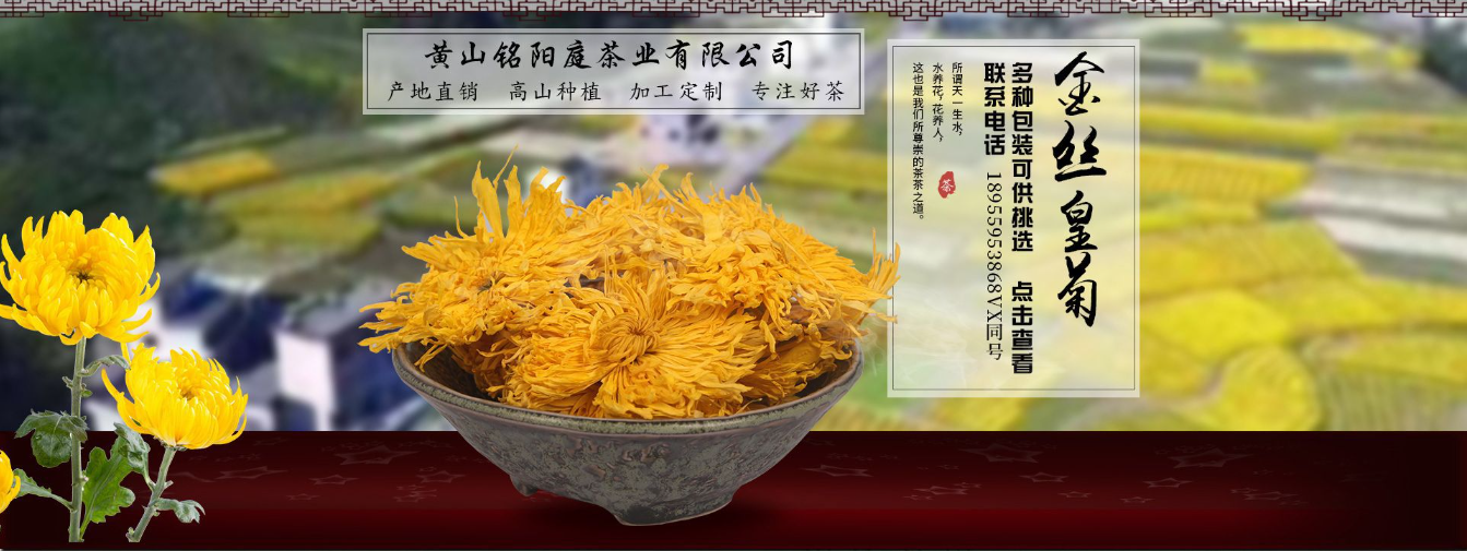 黃山銘陽庭茶業(yè)有限公司是花茶、金絲皇菊、花茶、金絲皇菊,綠茶等產(chǎn)品專業(yè)生產(chǎn)加工的公司,擁有完整、科學(xué)的質(zhì)量管理體系。經(jīng)銷批發(fā)的金絲皇菊、婺源皇菊、黃山貢菊、七月花、祁門紅茶、太平猴魁、黃山綠茶暢銷消費(fèi)者市場,在消費(fèi)者當(dāng)中享有較高的地位,公司與多家零售商和代理商建立了長期穩(wěn)定的合作關(guān)系。黃山銘陽庭茶業(yè)有限公司的誠信、實(shí)力和產(chǎn)品質(zhì)量獲得業(yè)界的認(rèn)可。歡迎各界朋友蒞臨參觀! [詳細(xì)介紹]