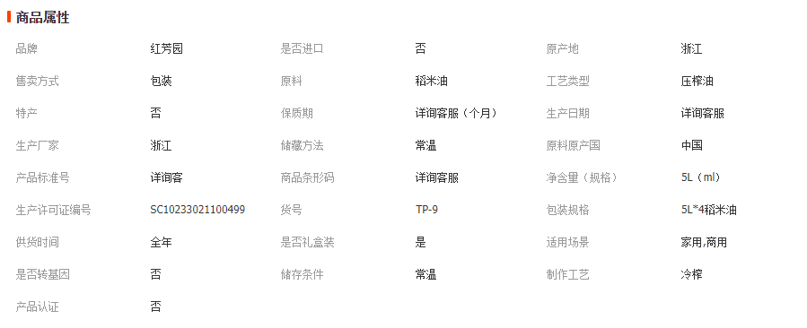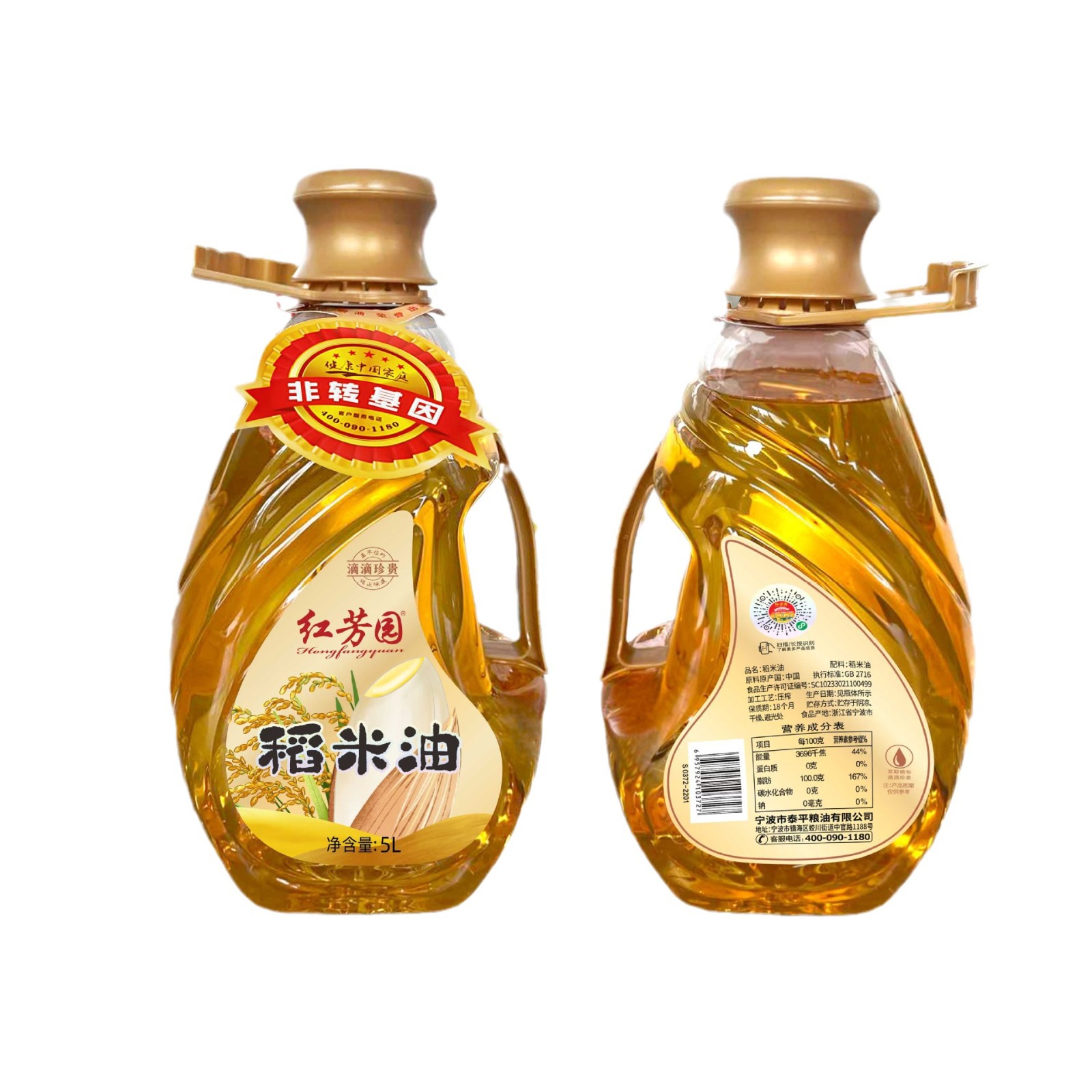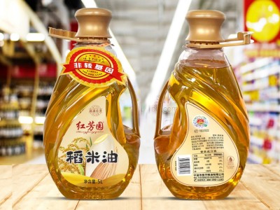 紅芳園5L*4稻米油 家用商用大桶裝食用油 5升非轉(zhuǎn)基因稻米食用油