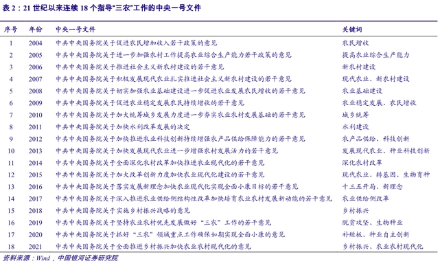 從日程上看,中央每年發(fā)布的第一份文件通常會(huì)在當(dāng)年的1-2月發(fā)布,簡(jiǎn)稱為“一號(hào)文件”,內(nèi)容上通常涉及土地改革、糧食安全、種業(yè)振興等核心議題,對(duì)于全年產(chǎn)業(yè)政策有提綱挈領(lǐng)作用。