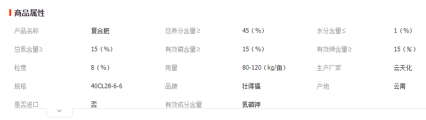 是以尿素、磷銨、硫酸鉀為主要原料,氮、磷、鉀有效養(yǎng)分含量≥45%,瓜果蔬菜按80-150公斤/畝茬,其中30-60公斤作基肥,50-90公斤作追肥。葉菜類蔬菜按60-120公斤/畝茬,其中15-40公斤作基肥,40-80公斤作追肥。
