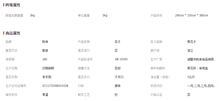 陳林原味瓜子5公斤1箱