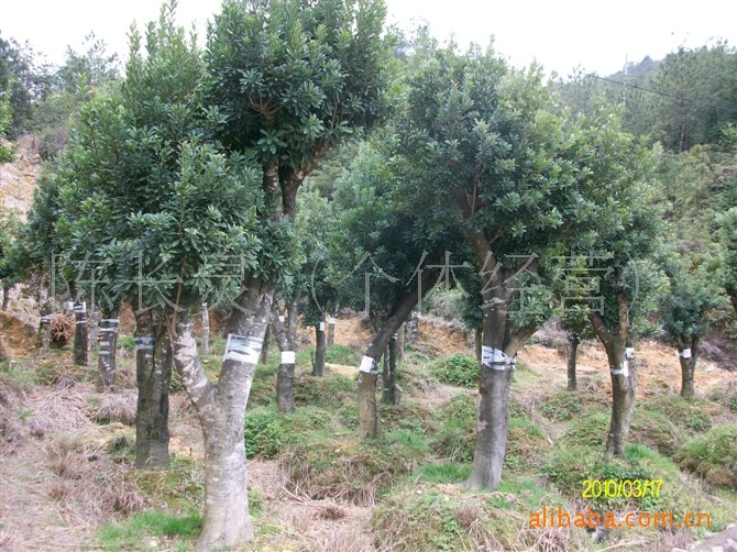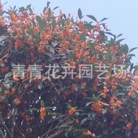 有生長勢強(qiáng)、枝干粗壯、葉形較大、葉表粗糙、葉色墨綠、花色橙紅的丹桂;有長勢中等、葉表光滑、葉緣具鋸齒、花呈乳白色的銀桂,且花朵茂密、香味甜郁;生長勢較強(qiáng)、葉表光滑、葉緣稀疏鋸齒或全緣、花呈淡黃色、花朵稀疏、淡香,除秋季9-10月與上列品種同時(shí)開花外,還可每2個(gè)月或3個(gè)月又開一次的四季桂。丹桂和四季桂,果實(shí)為紫黑色核果,俗稱桂子。桂花實(shí)生苗有明顯的主根,根系發(fā)達(dá)深長。幼根淺黃褐色,老根黃褐色[2]。