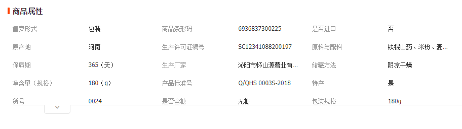 配料:鐵棍山藥、米粉、麥芽糊精