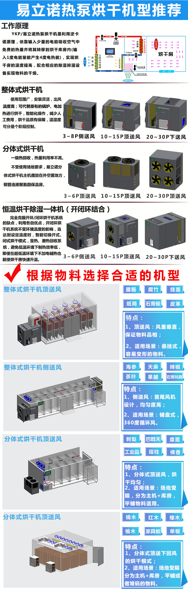 主營產(chǎn)品包括:常規(guī)高溫熱泵烘干機、四效閉環(huán)除濕機、開閉結(jié)合烘干除濕-體機、小型一體式免安裝烘干房、大型自動烘干流水線、污泥低溫干化機。
