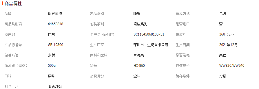 ww320ww240生腰果500g
