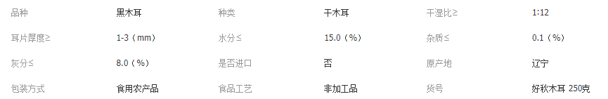 農(nóng)產(chǎn)品秋木耳干貨250g
