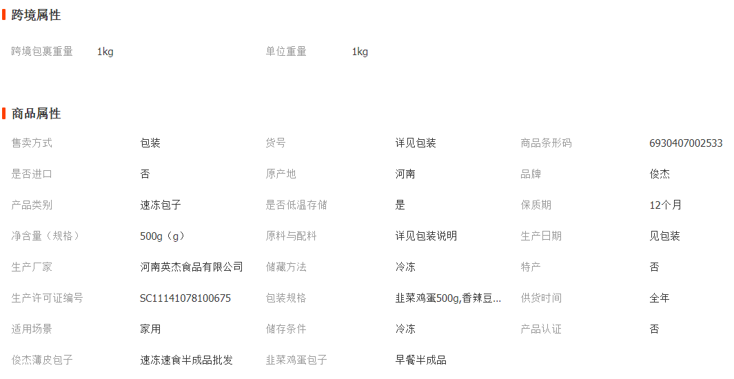 俊杰韭菜雞蛋包子500g