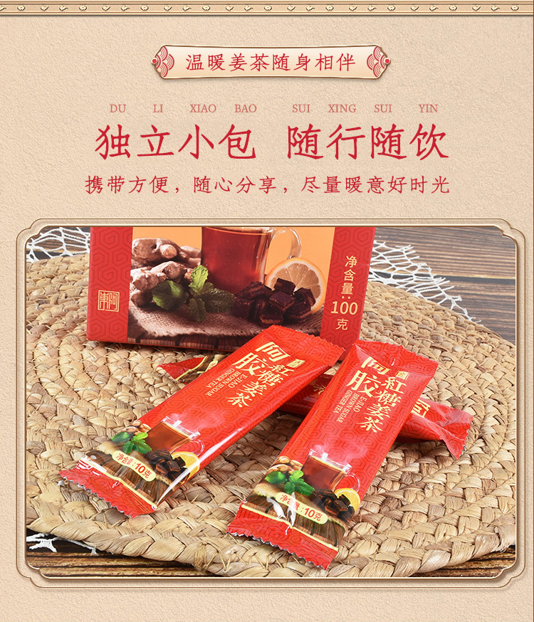 阿膠紅糖姜茶 紅棗桂圓枸杞茶 100克盒裝一件代發(fā)阿膠紅糖姜栆茶