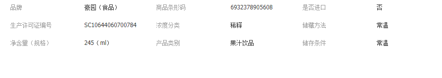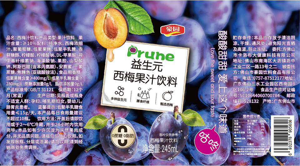豪園益生元西梅汁果汁
