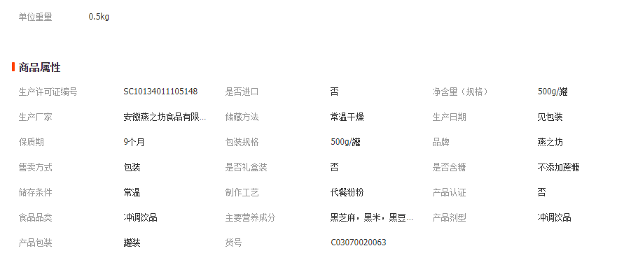 燕之坊0糖代餐粉黑八