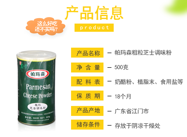 朱師傅帕瑪森粗粒芝士調味粉500g 濃香調味芝士粉 糕點烘培帕馬森