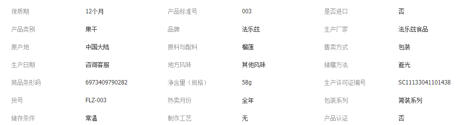 法樂茲榴蓮脆58g獨立