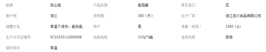 百山祖慶元香菇醬禮盒210gx6瓶兒童佐餐醬寶寶拌飯拌面醬菌菇醬