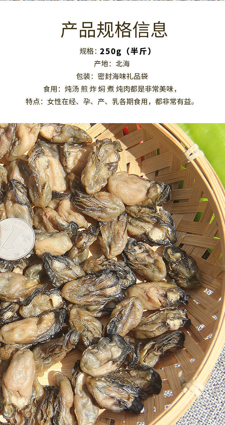 福建東山島牡蠣肉生蠔干淡曬無沙海蠣子淡菜蠔豉干海鮮干貨海產(chǎn)品