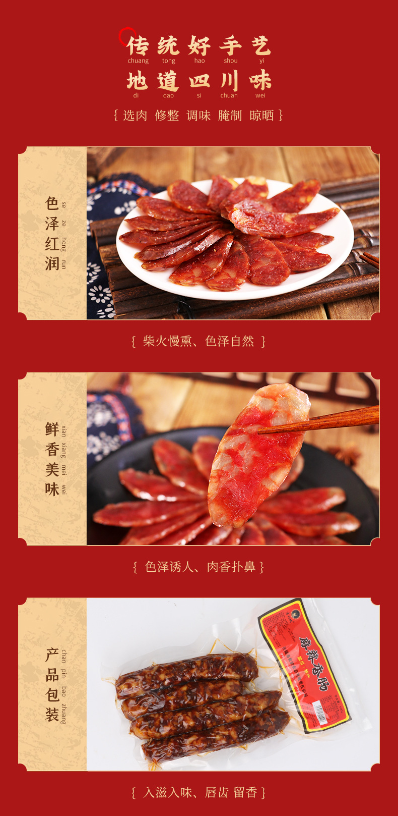 四川儀隴農(nóng)家自制煙熏香腸 煙熏麻辣香腸無煙熏廣味香腸 土豬香腸