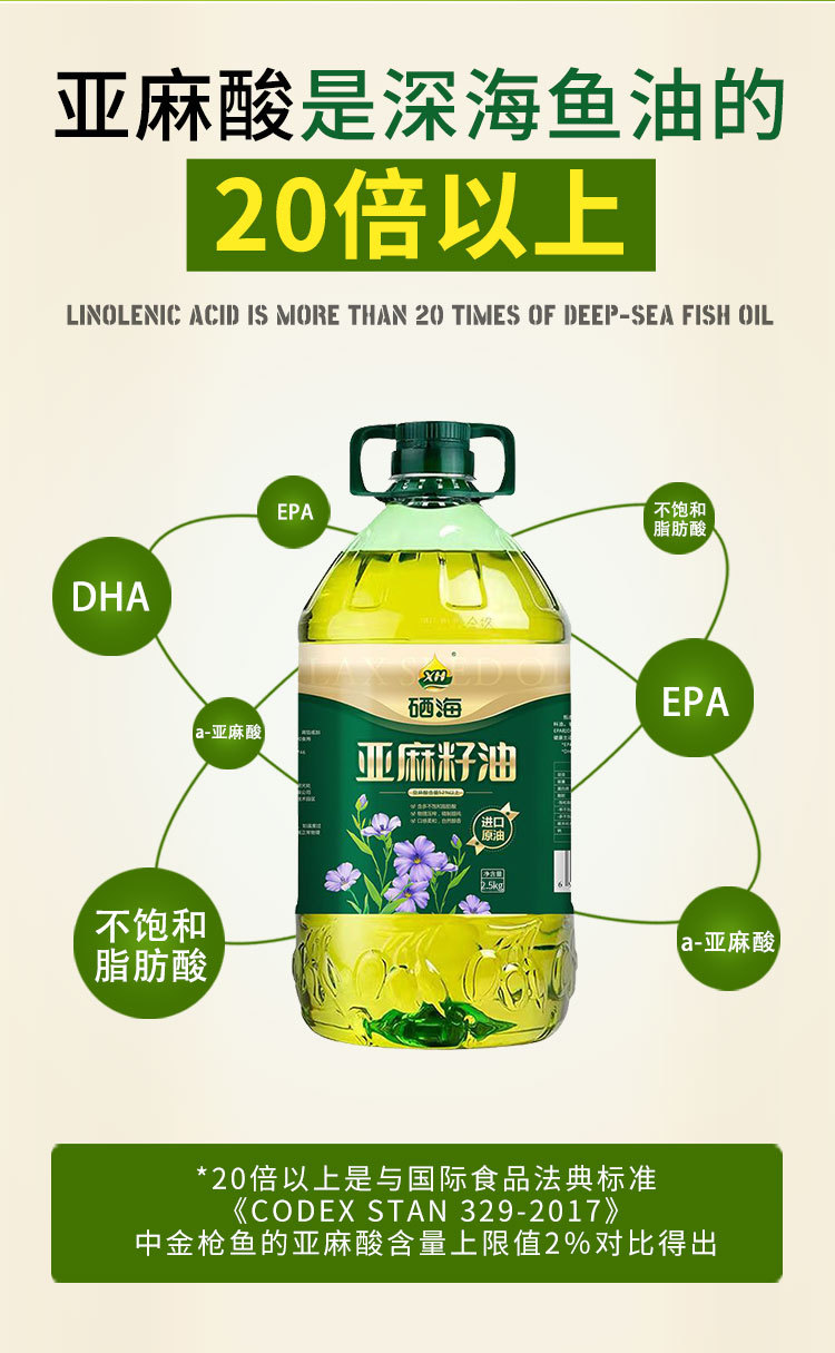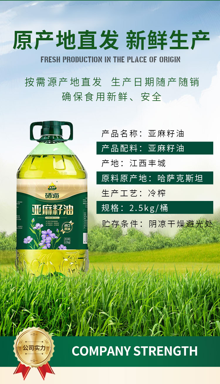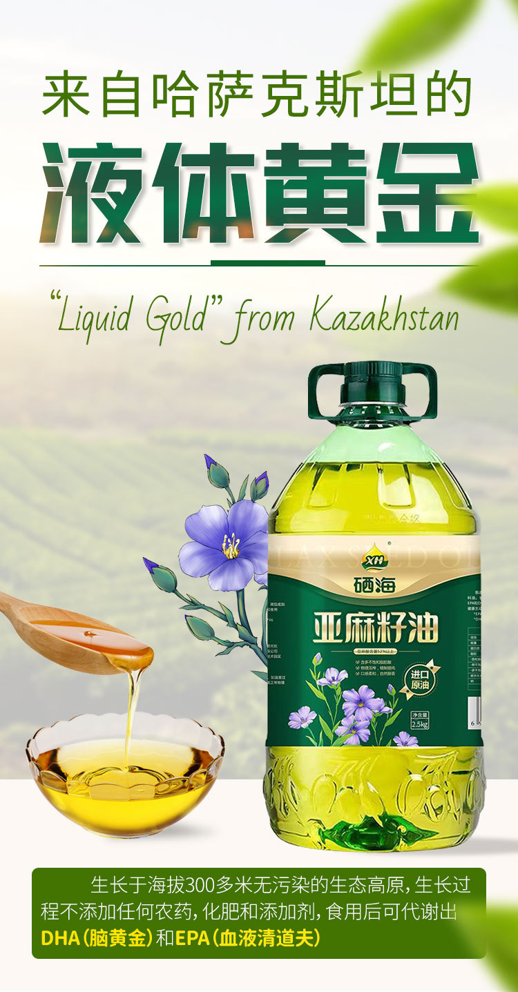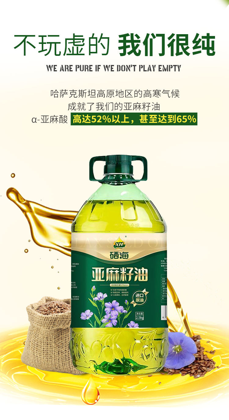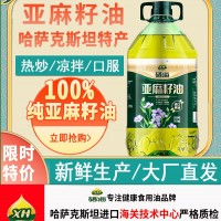 xh硒海冷榨一級亞麻籽油純熱炒月子食用油壓榨胡麻油亞麻酸5斤