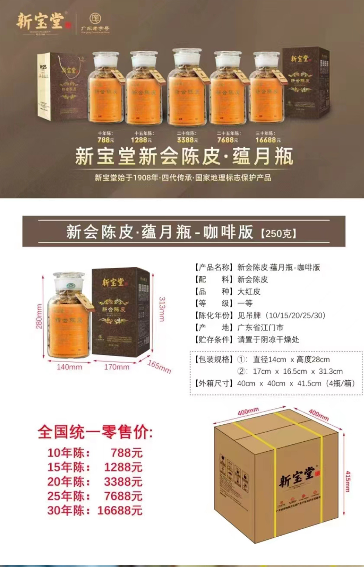 新寶堂新會陳皮10年15年20年陳皮干蘊月瓶裝老陳皮250克 廠家批發(fā)