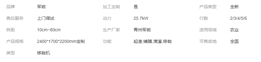軍巖 辣椒移栽機 使用方便 蔬菜種植機械 支持定制