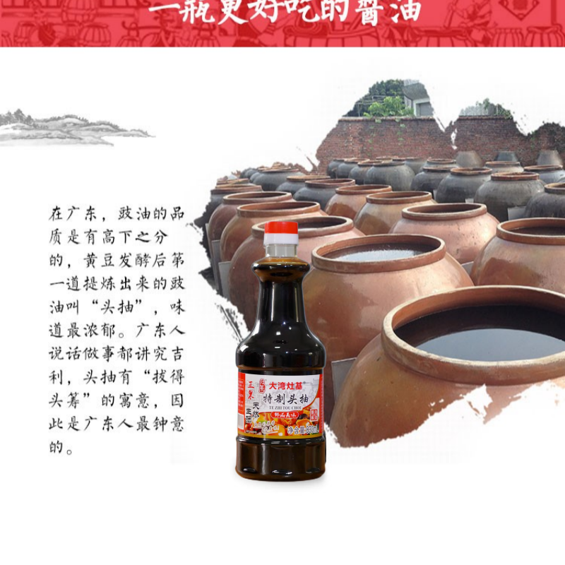 廣東增城特產(chǎn)正果灶基釀造醬油特級生抽御品頭抽特制頭抽天然生曬