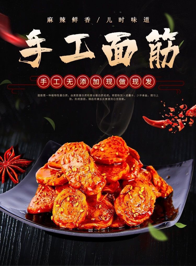 麻辣面筋圈烤面筋追劇夜市零食手工辣條即食食品90g/包