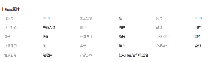 產(chǎn)品名:白色單件防蜂衣
