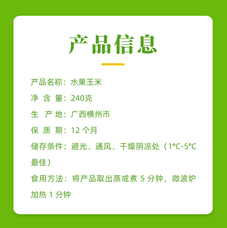 源頭廠家直銷水果玉米批發(fā)代發(fā)真空包裝爽脆多汁開(kāi)袋即食240克裝