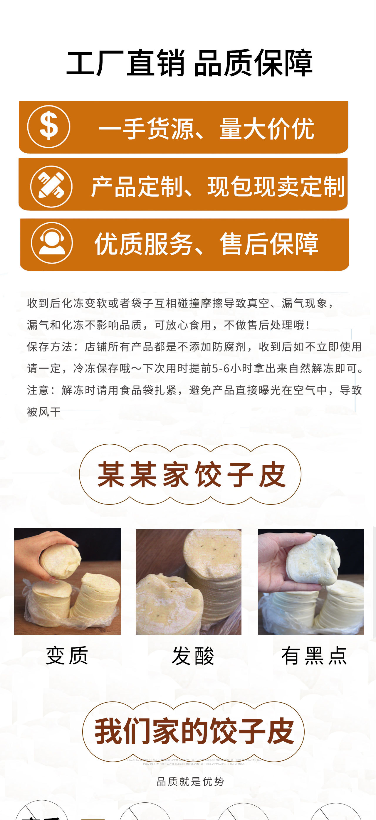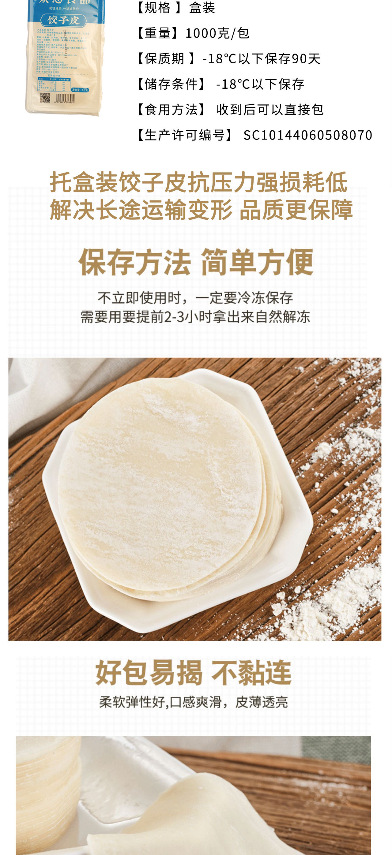 水餃皮規(guī)格:一袋2斤裝,共120-130張皮,可承接大批量訂單,量大價(jià)優(yōu)!可下單拿樣試試,有批發(fā)鏈接。一整箱32斤裝,整箱拿包郵,咨詢客服改運(yùn)費(fèi)!