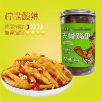 檸檬酸辣無骨雞爪2斤超大罐裝蒜香人工去骨鳳爪1000g電商批發(fā)