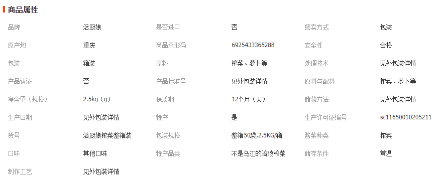 涪廚娘榨菜絲50g*50袋
